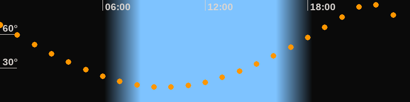 | Höchster Stand (Kulmination) | 21:35 Uhr (h = 88,1°) |