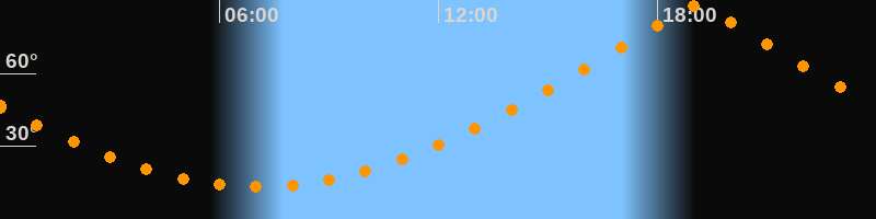 | Höchster Stand (Kulmination) | 19:04 Uhr (h = 88,1°) |