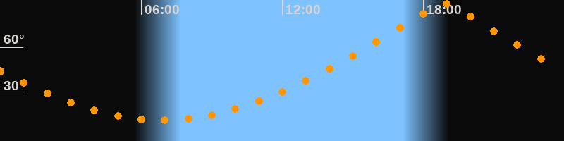 | Höchster Stand (Kulmination) | 18:53 Uhr (h = 88,1°) |