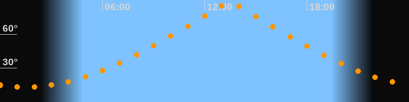 | Höchster Stand (Kulmination) | 13:28 Uhr (h = 88,1°) |