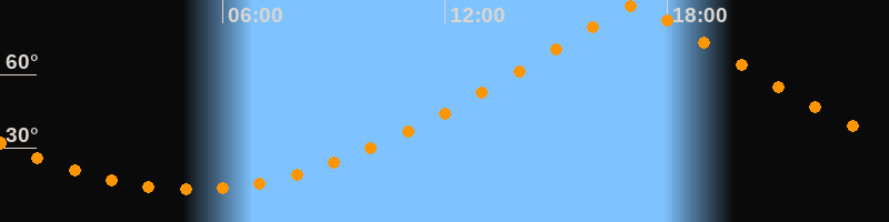 | Höchster Stand (Kulmination) | 17:09 Uhr (h = 88,1°) |