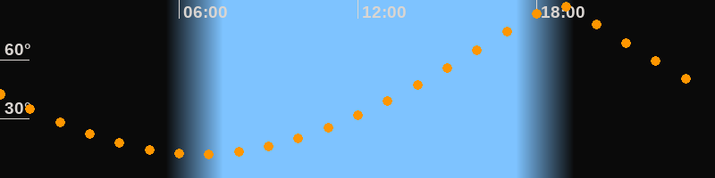 | Höchster Stand (Kulmination) | 18:41 Uhr (h = 89,4°) |