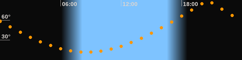 | Höchster Stand (Kulmination) | 20:33 Uhr (h = 89,4°) |