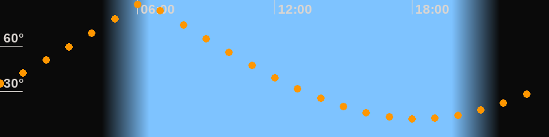 | Höchster Stand (Kulmination) | 06:17 Uhr (h = 89,4°) |