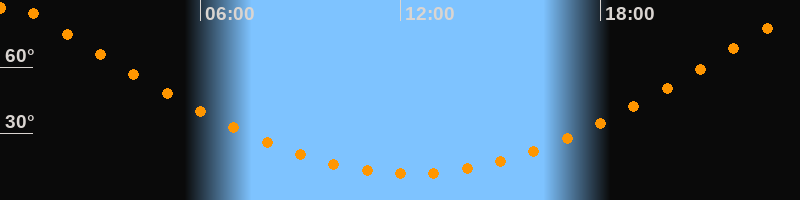 Höchster Stand (Kulmination)00:19 Uhr (h = 89,4°)
