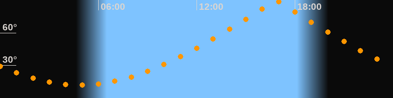 | Höchster Stand (Kulmination) | 16:51 Uhr (h = 89,4°) |