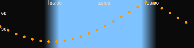 | Höchster Stand (Kulmination) | 18:23 Uhr (h = 89,4°) |