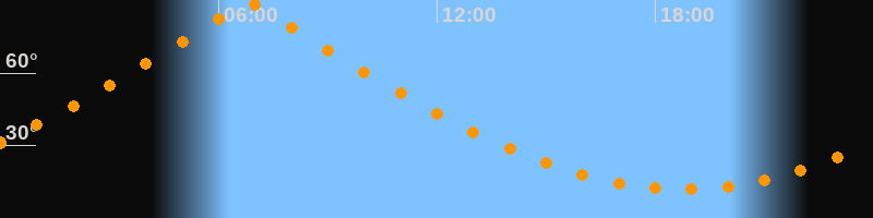 | Höchster Stand (Kulmination) | 06:48 Uhr (h = 89,4°) |