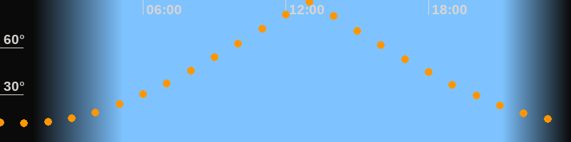 | Höchster Stand (Kulmination) | 12:56 Uhr (h = 89,4°) |