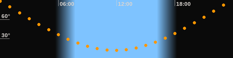 | Höchster Stand (Kulmination) | 23:49 Uhr (h = 89,4°) |