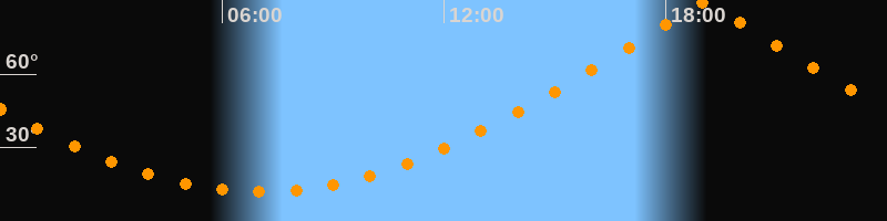 | Höchster Stand (Kulmination) | 19:02 Uhr (h = 89,4°) |