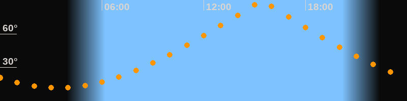 | Höchster Stand (Kulmination) | 15:24 Uhr (h = 89,4°) |