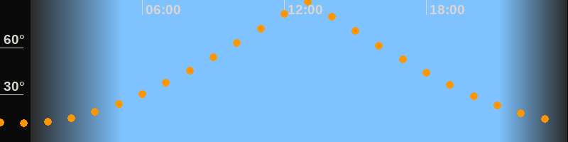 | Höchster Stand (Kulmination) | 12:55 Uhr (h = 89,4°) |