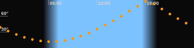 Höchster Stand (Kulmination)18:13 Uhr (h = 89,4°)