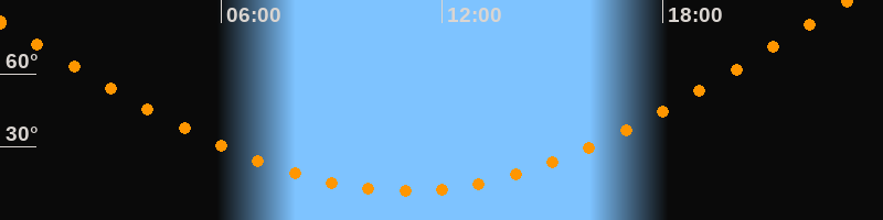 Höchster Stand (Kulmination)23:01 Uhr (h = 89,4°)
