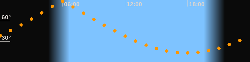 | Höchster Stand (Kulmination) | 05:57 Uhr (h = 88,1°) |