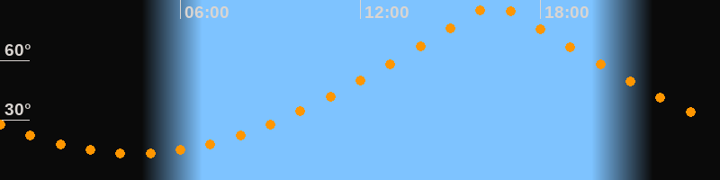 | Höchster Stand (Kulmination) | 16:28 Uhr (h = 88,1°) |