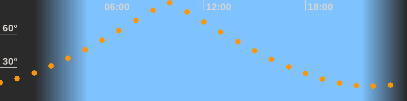 | Höchster Stand (Kulmination) | 09:55 Uhr (h = 88,1°) |