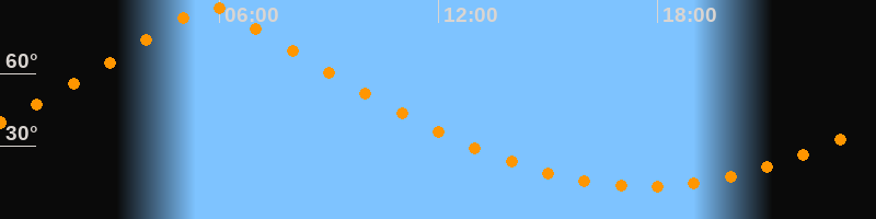 | Höchster Stand (Kulmination) | 05:45 Uhr (h = 88,1°) |