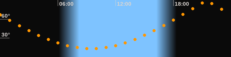 | Höchster Stand (Kulmination) | 21:27 Uhr (h = 88,1°) |