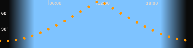 | Höchster Stand (Kulmination) | 12:20 Uhr (h = 88,1°) |