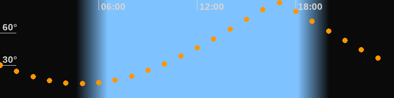| Höchster Stand (Kulmination) | 16:53 Uhr (h = 88,1°) |