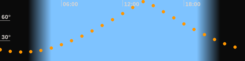 | Höchster Stand (Kulmination) | 14:08 Uhr (h = 88,1°) |