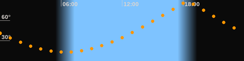 | Höchster Stand (Kulmination) | 18:25 Uhr (h = 88,1°) |
