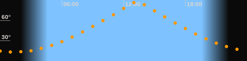 | Höchster Stand (Kulmination) | 13:18 Uhr (h = 88,1°) |