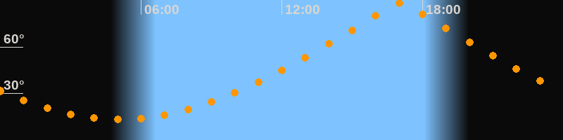 | Höchster Stand (Kulmination) | 17:03 Uhr (h = 88,1°) |