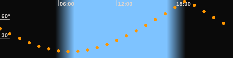 | Höchster Stand (Kulmination) | 19:11 Uhr (h = 88,8°) |