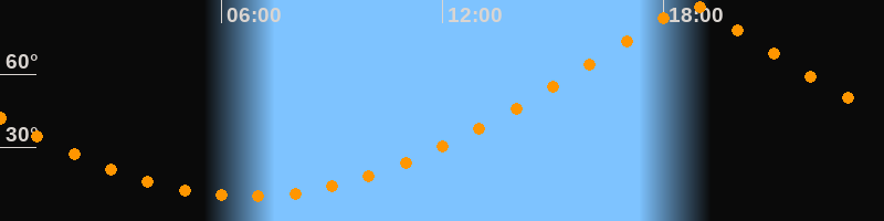 | Höchster Stand (Kulmination) | 18:44 Uhr (h = 88,8°) |