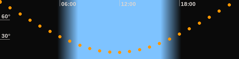 | Höchster Stand (Kulmination) | 23:43 Uhr (h = 88,8°) |