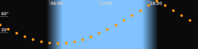 | Höchster Stand (Kulmination) | 19:00 Uhr (h = 88,8°) |