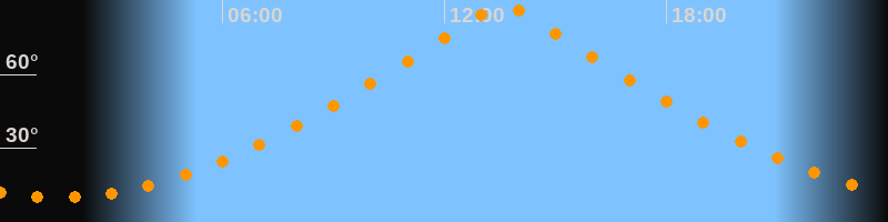 | Höchster Stand (Kulmination) | 13:34 Uhr (h = 88,8°) |