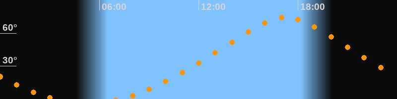 | Höchster Stand (Kulmination) | 17:15 Uhr (h = 74,6°) |