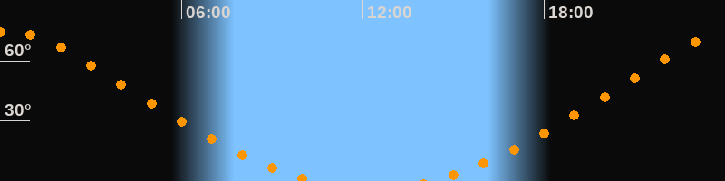 | Höchster Stand (Kulmination) | 00:17 Uhr (h = 74,6°) |