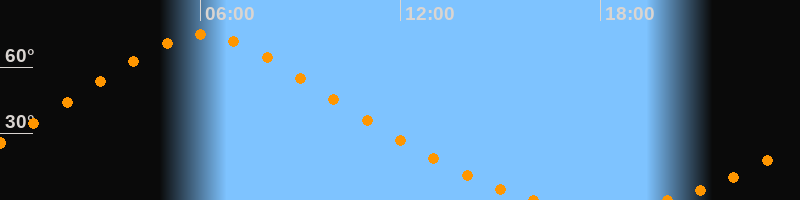 | Höchster Stand (Kulmination) | 06:05 Uhr (h = 74,6°) |