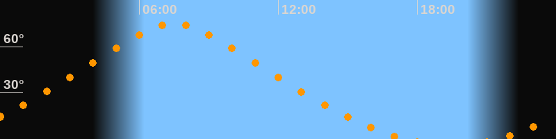 | Höchster Stand (Kulmination) | 07:29 Uhr (h = 74,6°) |