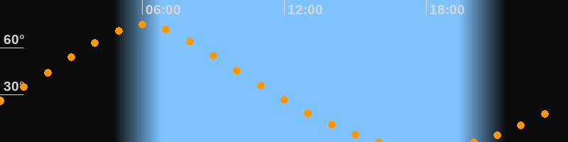 | Höchster Stand (Kulmination) | 06:03 Uhr (h = 74,6°) |