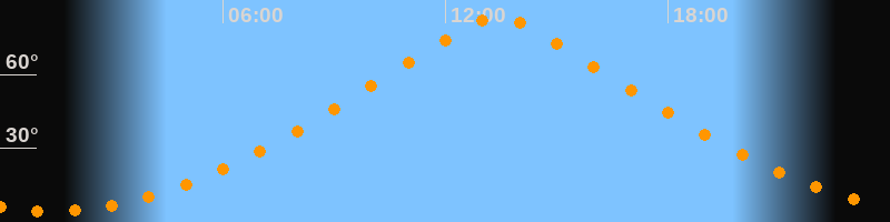 | Höchster Stand (Kulmination) | 13:25 Uhr (h = 83,1°) |