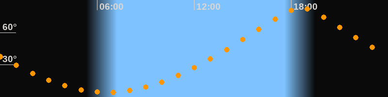 | Höchster Stand (Kulmination) | 18:36 Uhr (h = 83,1°) |