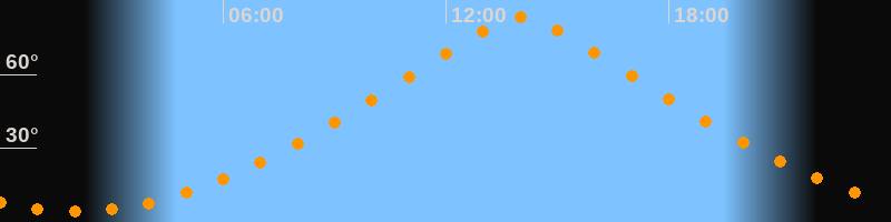 | Höchster Stand (Kulmination) | 14:01 Uhr (h = 83,1°) |