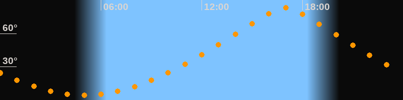| Höchster Stand (Kulmination) | 16:59 Uhr (h = 83,1°) |