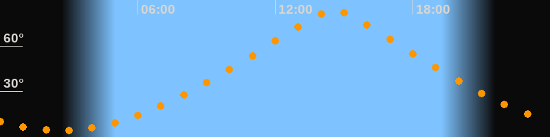 | Höchster Stand (Kulmination) | 14:33 Uhr (h = 83,1°) |