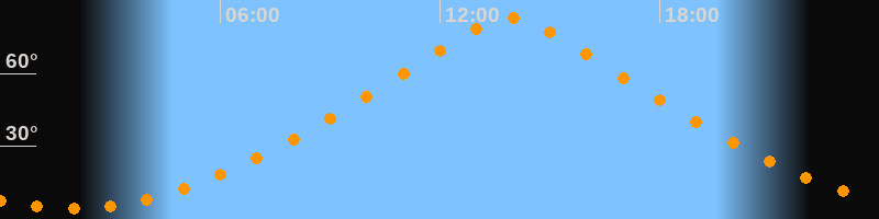 | Höchster Stand (Kulmination) | 13:54 Uhr (h = 83,1°) |