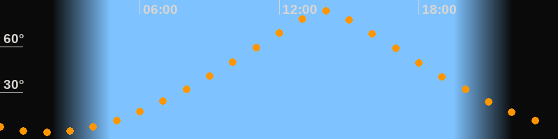 | Höchster Stand (Kulmination) | 13:59 Uhr (h = 83,1°) |