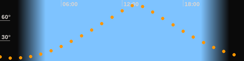 | Höchster Stand (Kulmination) | 13:24 Uhr (h = 83,1°) |