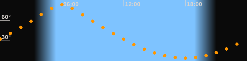| Höchster Stand (Kulmination) | 05:59 Uhr (h = 83,1°) |
