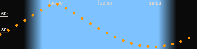 | Höchster Stand (Kulmination) | 06:41 Uhr (h = 83,1°) |